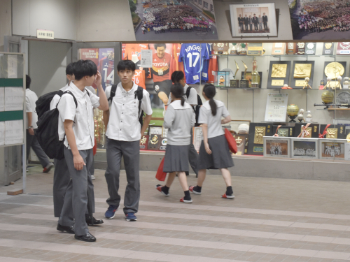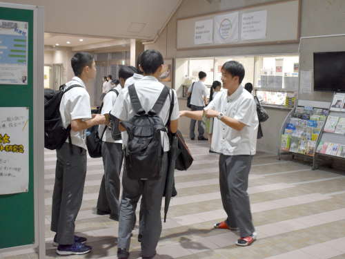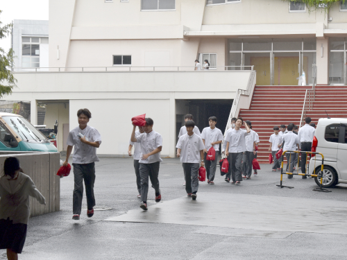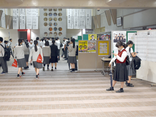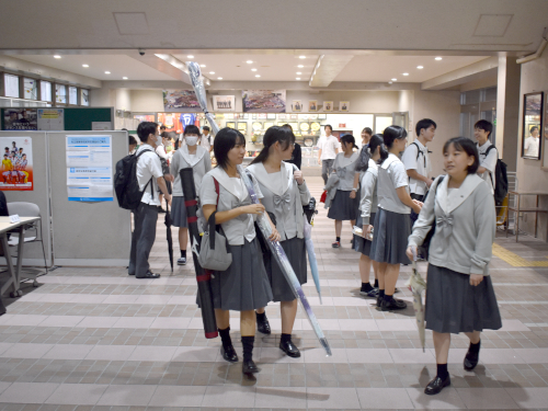 この日は雨だったので傘を手にしている生徒が目立ちました。涼しくなって秋雨の季節に入ったようです。