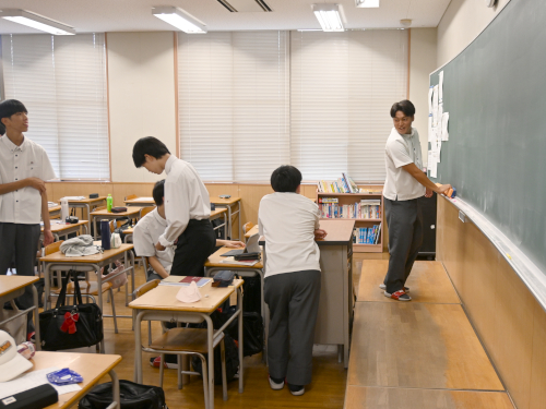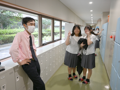 今日の写真は、そんな10分間に1年生の教室周辺を撮ってきたものです。飾り気のないリアルな九国をご覧ください。