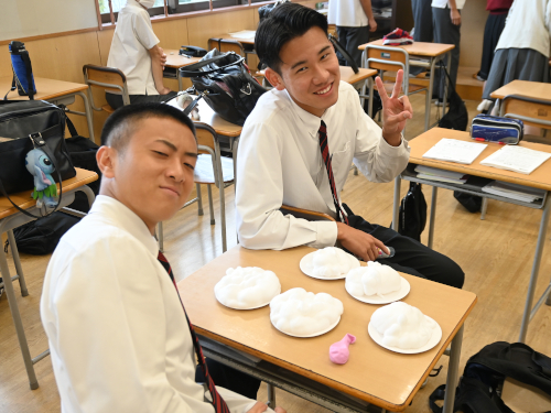 こうした遊び心も九国の伝統。九国の卒業生である尼崎先生も、高校生のころ同じようなことをしていたかも。