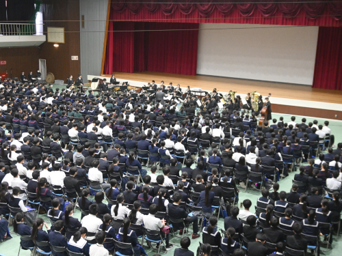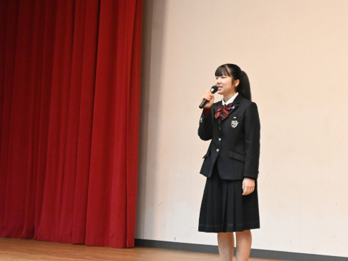 開会の挨拶は63代生徒会長の平田さん(黒崎中)。