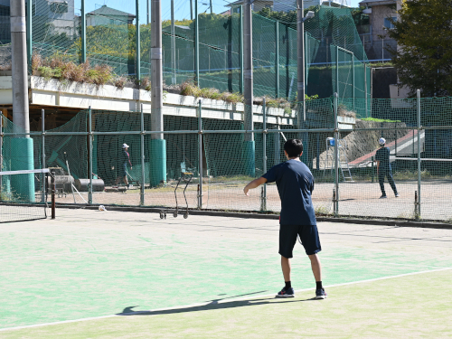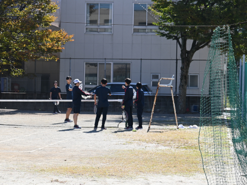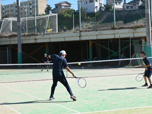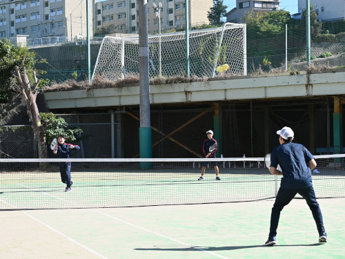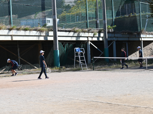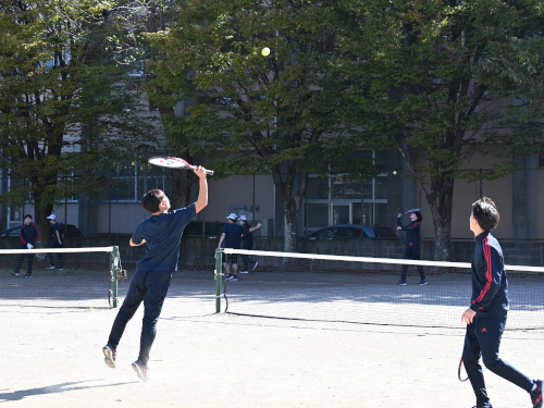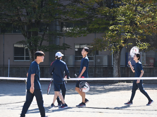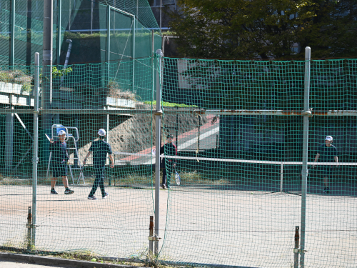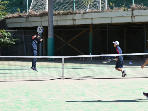 1年生の男子がテニスをしていました。