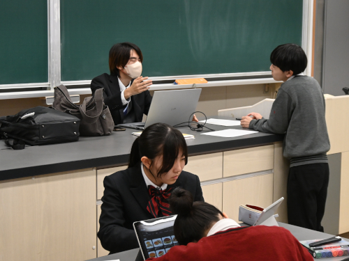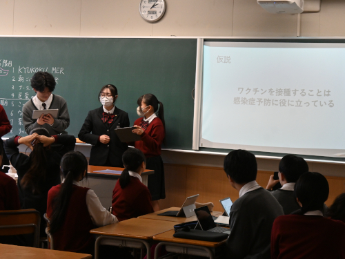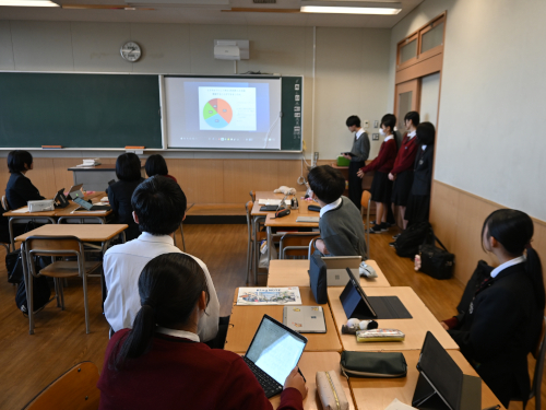 昨日は企業や大学の方をお招きして、2年生が数カ月単位で進めてきた総合探究の中間発表をおこなっていました。