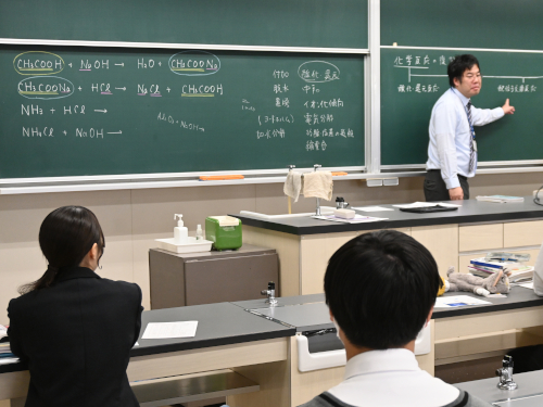 その隣にある化学教室では西村先生が、