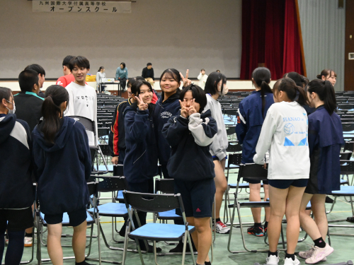 今回のオープンスクールでは、九国の良さを改めて知ることができ、夏のときとはまた違う入試ワンポイントアドバイスを初めて聞いて、入試に対して少し不安だったこともあるけど、自分が何を頑張れば良いのかが分かった(気づけた)気がしました!!入試まであと3ヶ月、九国に絶対入れるように頑張ります!!