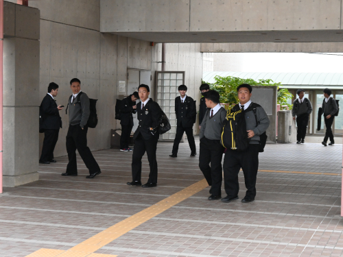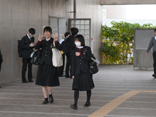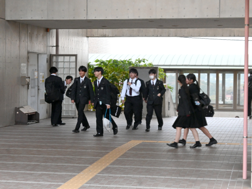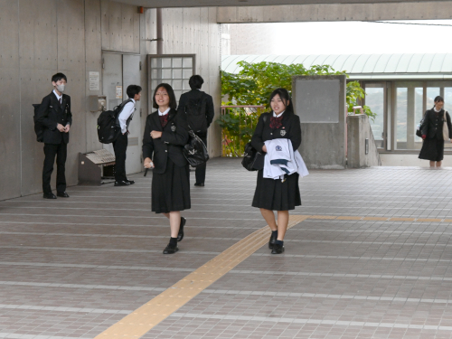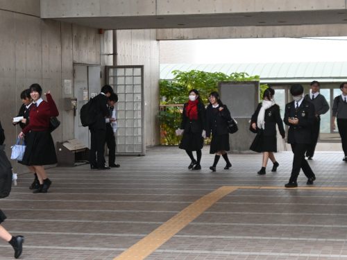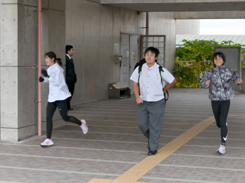 まだ夏服の生徒もいました。両横は陸上部員。