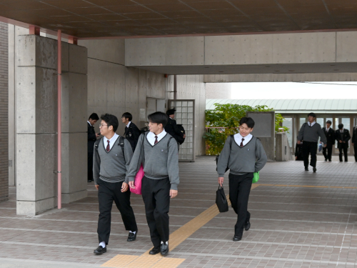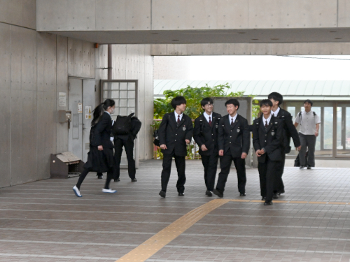 九国は斜面に沿うように校舎が建っているため、付属高校から見たら「5階」にあたる付属中学校にも別玄関があるんです。