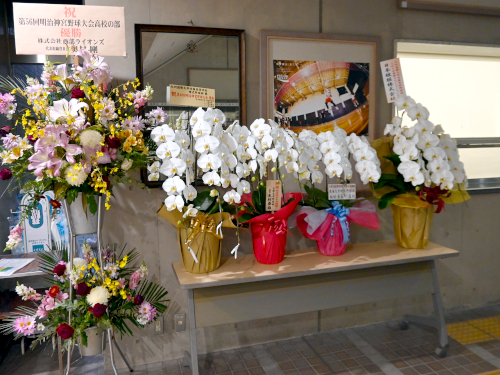 野球部の神宮大会優勝のお祝いにいただいた花。