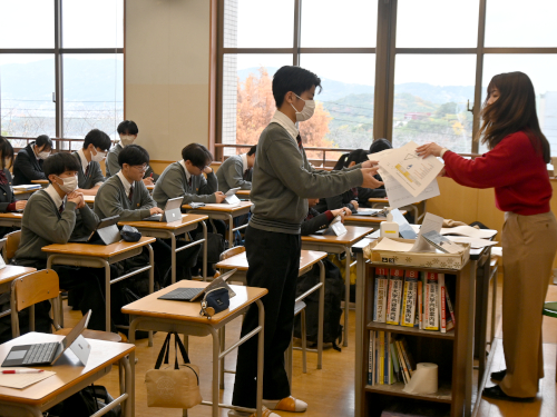 写っているのは2年生と3年生です。3年生の手元には、総合型や学校推薦型の合格通知が届き始めています。