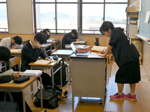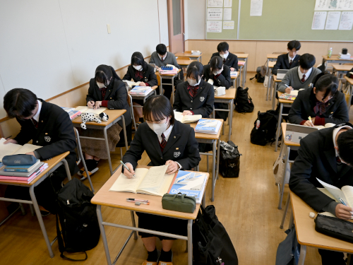 授業内容の多くは大学入試にむけた演習です。実物の入試問題に似せてつくった問題を解いて実戦力をつけます。