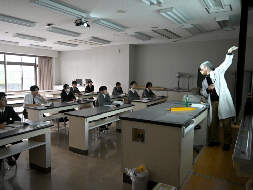 九国には物理、生物、化学、社会、情報の特別教室が2つずつあります。今回の授業はその物理教室でのものです。