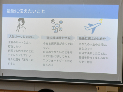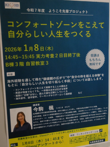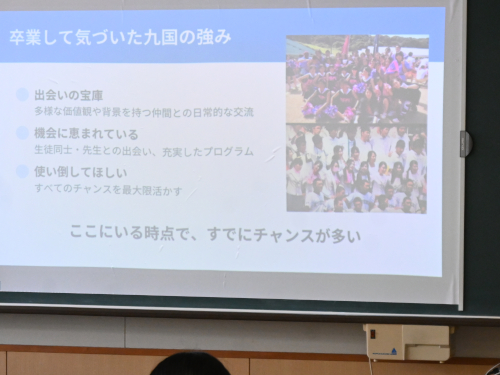 これまでにいろんな道へ進んでいった卒業生が、九国で後輩たちに話をしてくれました。生徒の参加は事前申請制です。