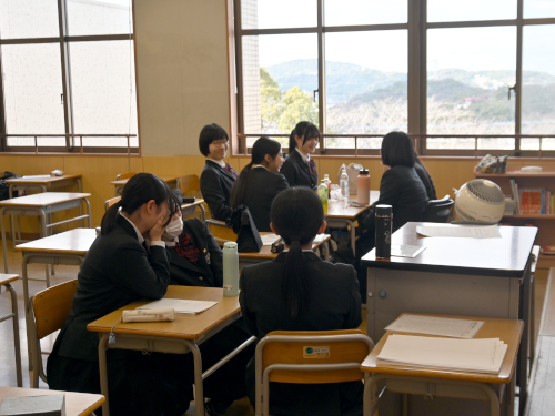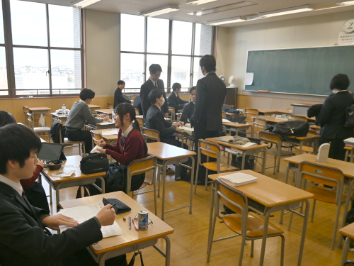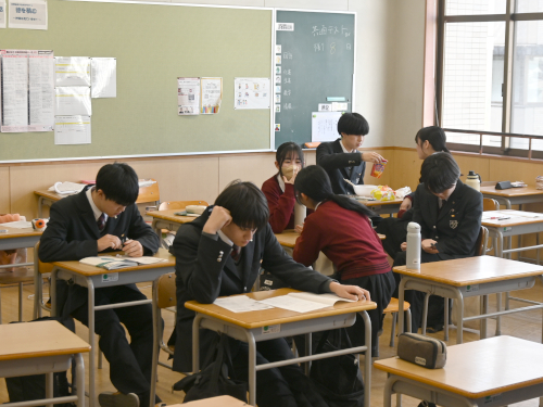 生徒たちが教室で昼ご飯を食べています。