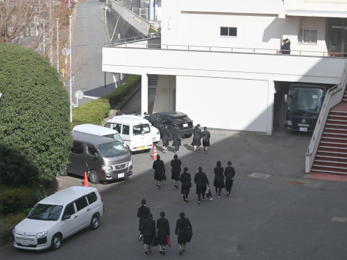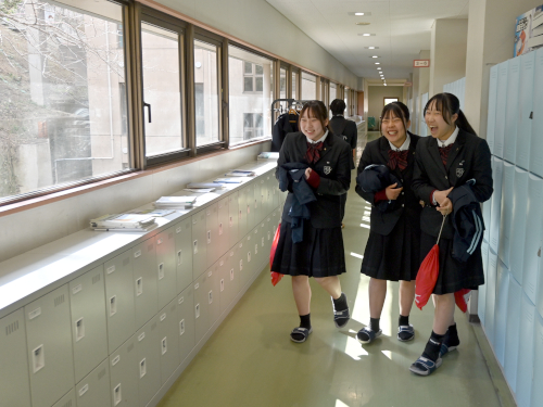 次の体育の授業の準備に向かう女子生徒たち。