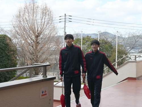 渡り廊下で偶然すれ違った男子生徒たち。