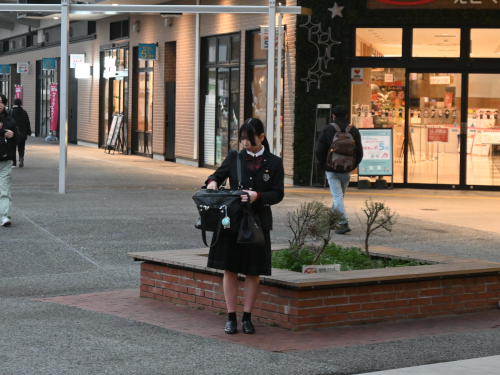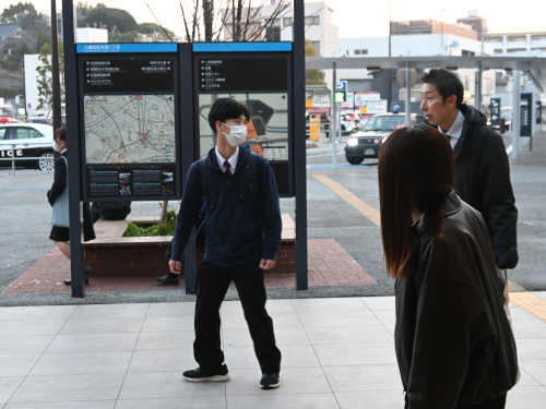 今朝7:00ごろ。折尾駅前にはもう九国生が。