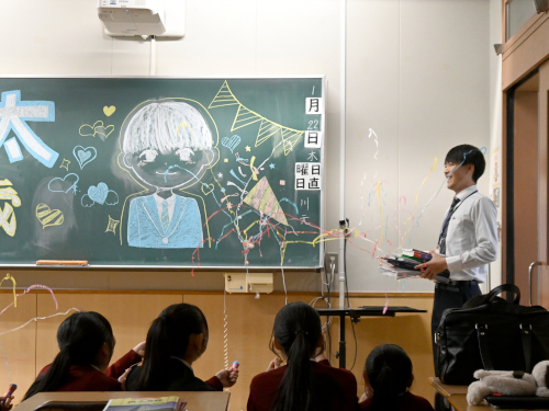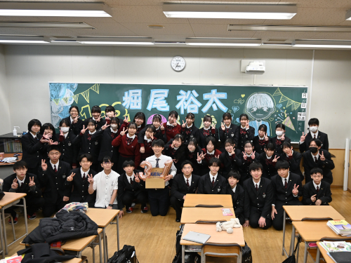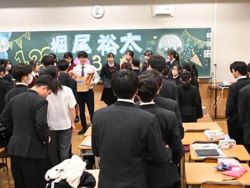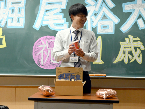 昨日は1年2組の担任の堀尾先生の誕生日だったようで、それを知ったクラスの生徒が朝のホームルームでサプライズを企画!
