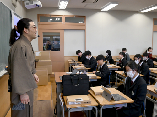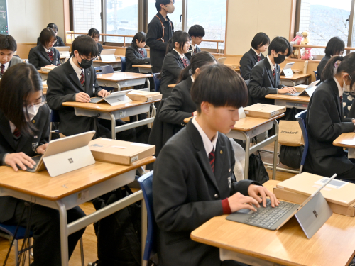 生徒たちにcopilot+PCを配った三好先生。
