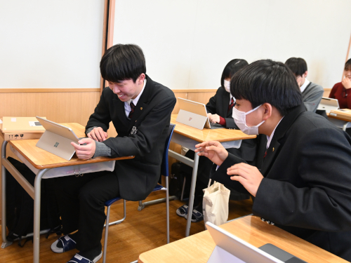 あの日のあと、このPCを活用した2年生の授業を、Microsoft社のスタッフの方々が取材にいらっしゃいました。