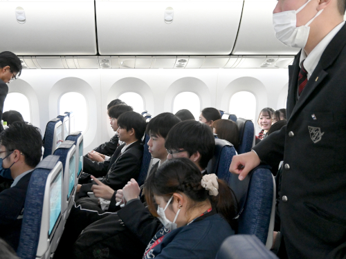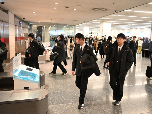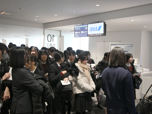初日の朝、生徒たちは福岡空港に集合して羽田空港へ。さらにバスへ乗り換えて、新潟の上越国際スキー場に到着します。