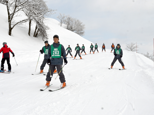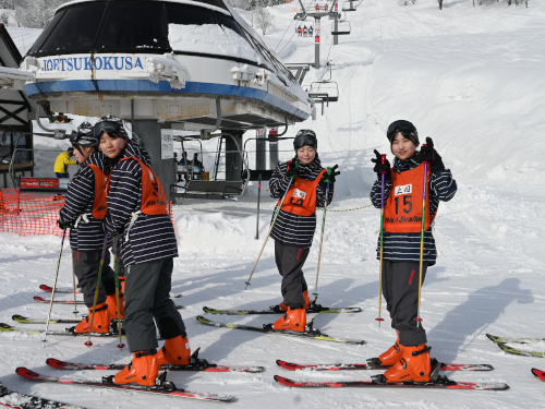 まだ足元がおぼつかない様子でフラフラとゆっくり滑る生徒もいれば、慣れてきて山の上まで登っていく生徒もいます。