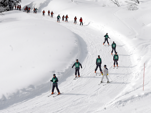 こちらはゲレンデの上の方へ進むグループ。