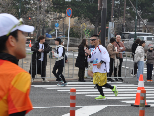 通過していくいろんなランナーを応援しました。