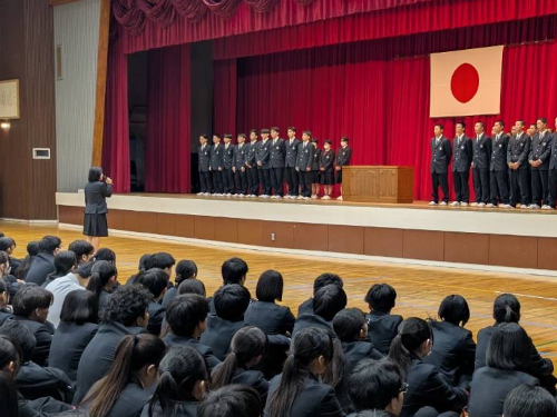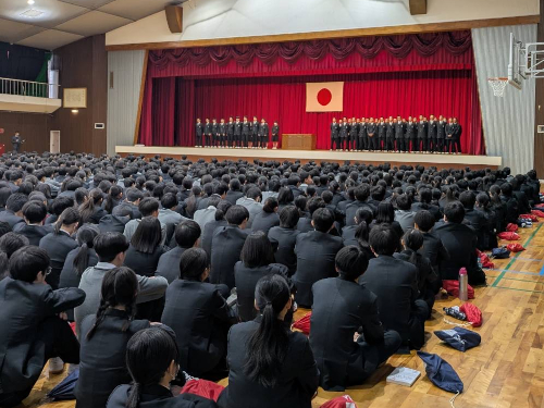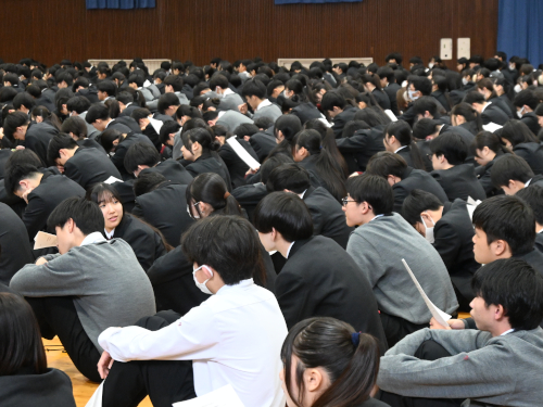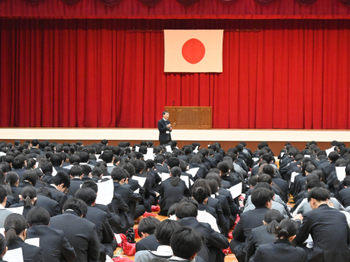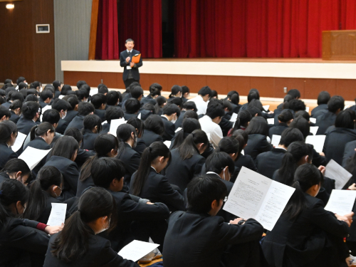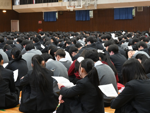 その後、佐藤教務部長から春のセンバツ甲子園に向けて、応援参加生徒への申し込み方法などの説明がありました。