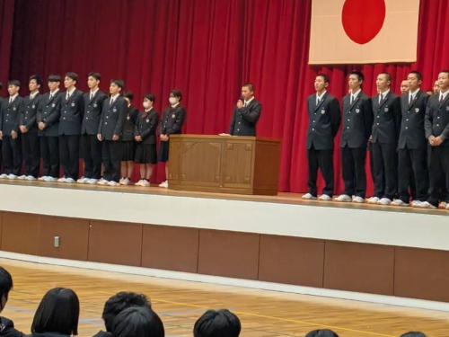 代表挨拶は、野球部主将の城野くん(黒崎中)。