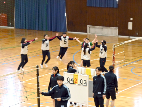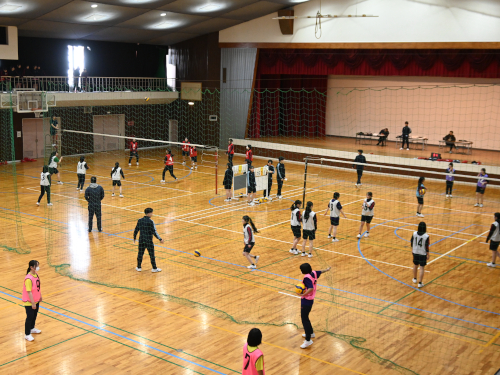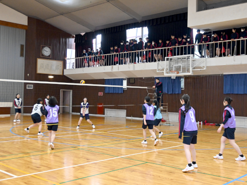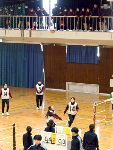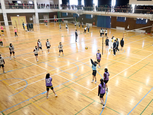 2026年3月12日 / 最終更新日 : 2026年3月11日 959h_member01 トピックス クラスマッチの1日目でした② 1つめの記事の続きです。 第2体育館の隣にあるのが第1体育館。 ここでは女子がバレーの試合をしていました。 コートは全部で4面つくっています。 勝って喜ぶ場面もあれば、 負けて悔しい場面もあります。 第1体育館の中2階は応援席です。 上から降る応援の声を浴びながら、 熱い試合が繰り広げられていました。 同じころ、屋外ではサッカーがありました。 サッカーの様子はコチラからどうぞ。