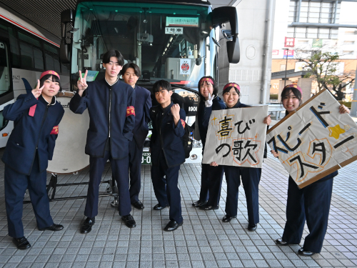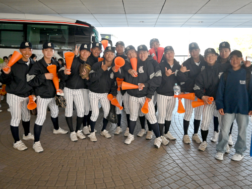試合の日、甲子園に応援の部員が到着。