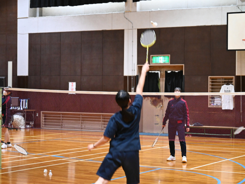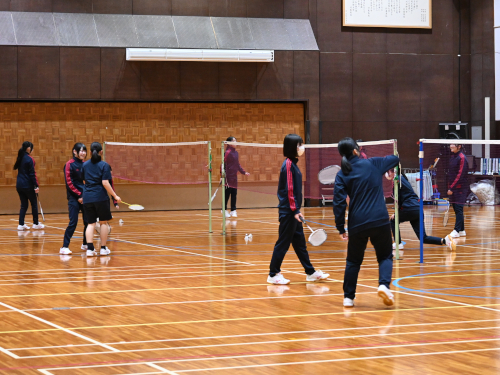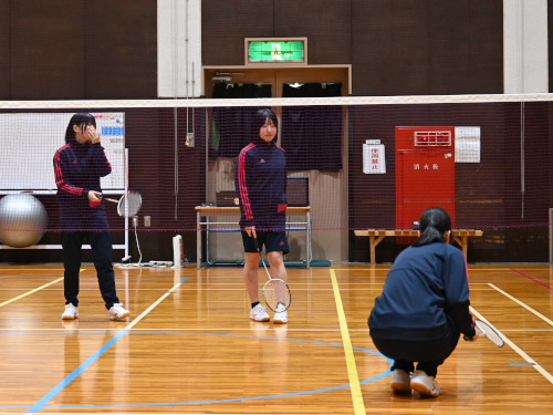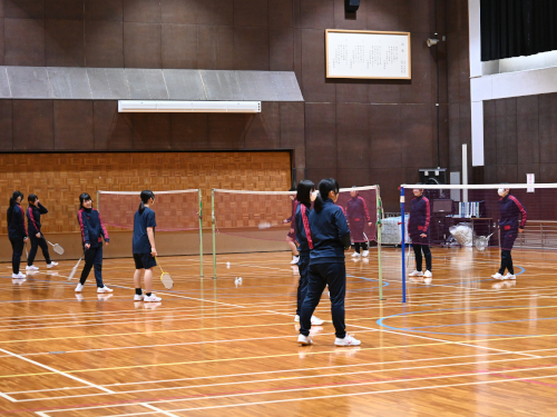 1年生女子が受けているバドミントンの授業。