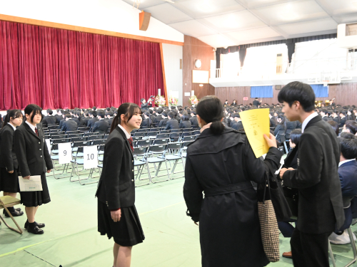 会場の第1体育館には、朝早くから新制服に身を包んだ新入生たちが集まってくれました。入学おめでとうございます。