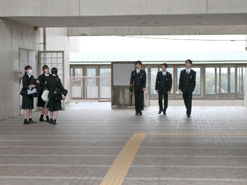 ここは付属中学校の玄関前です。