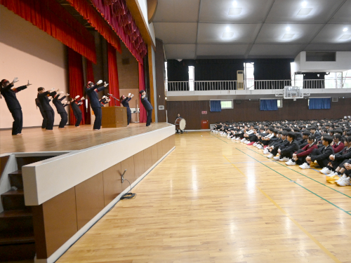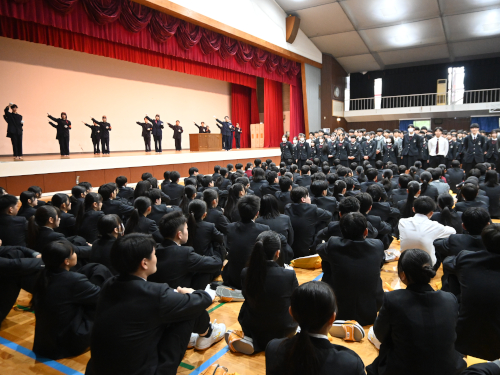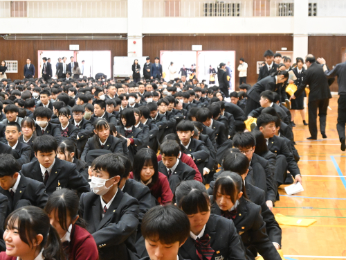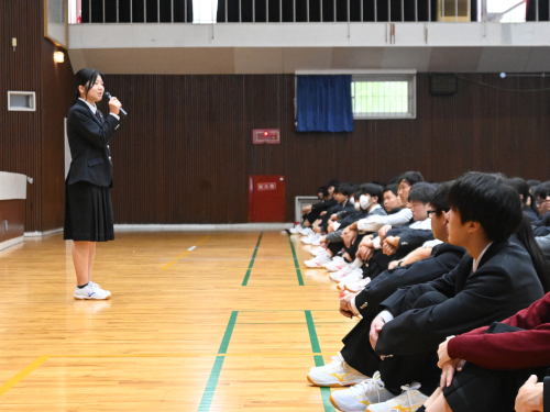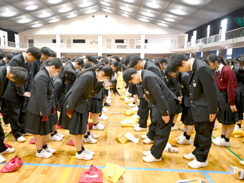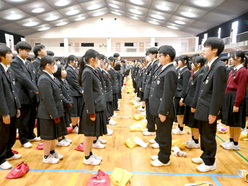 入学直後には新入生と先輩たちが一堂に会して「対面式」が行われました。場所は第1体育館です。