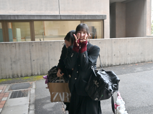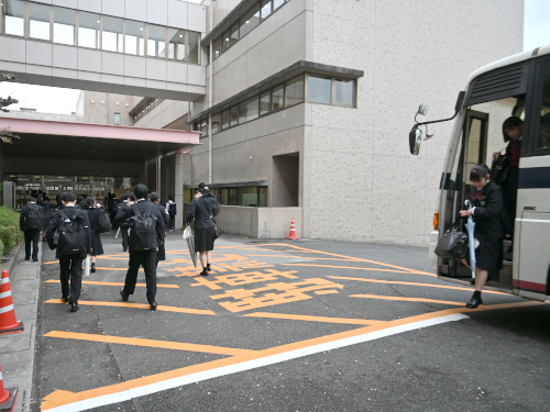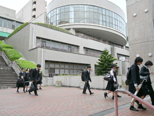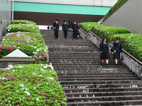歩いてくる生徒は裏門から入って大階段へ。