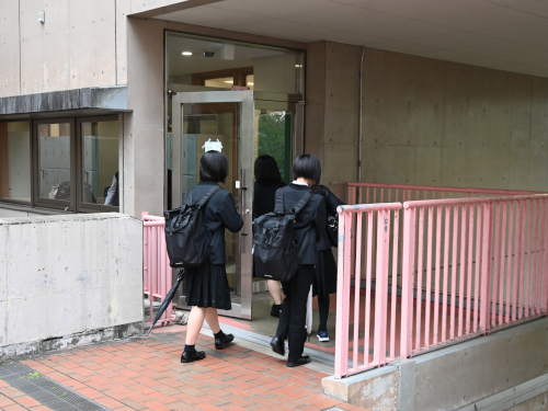 降りてきた生徒が校舎に入っていました。